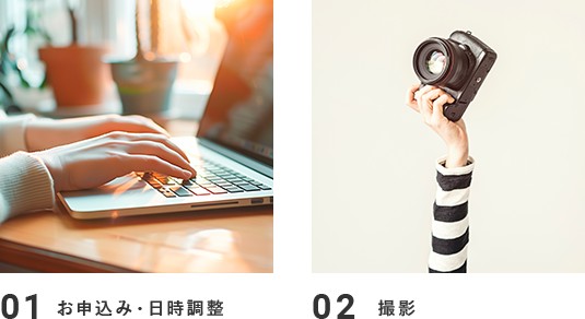 撮影ご希望日の一週間前までに、ご予約ください。撮影日時の変更は、一回までとしております。